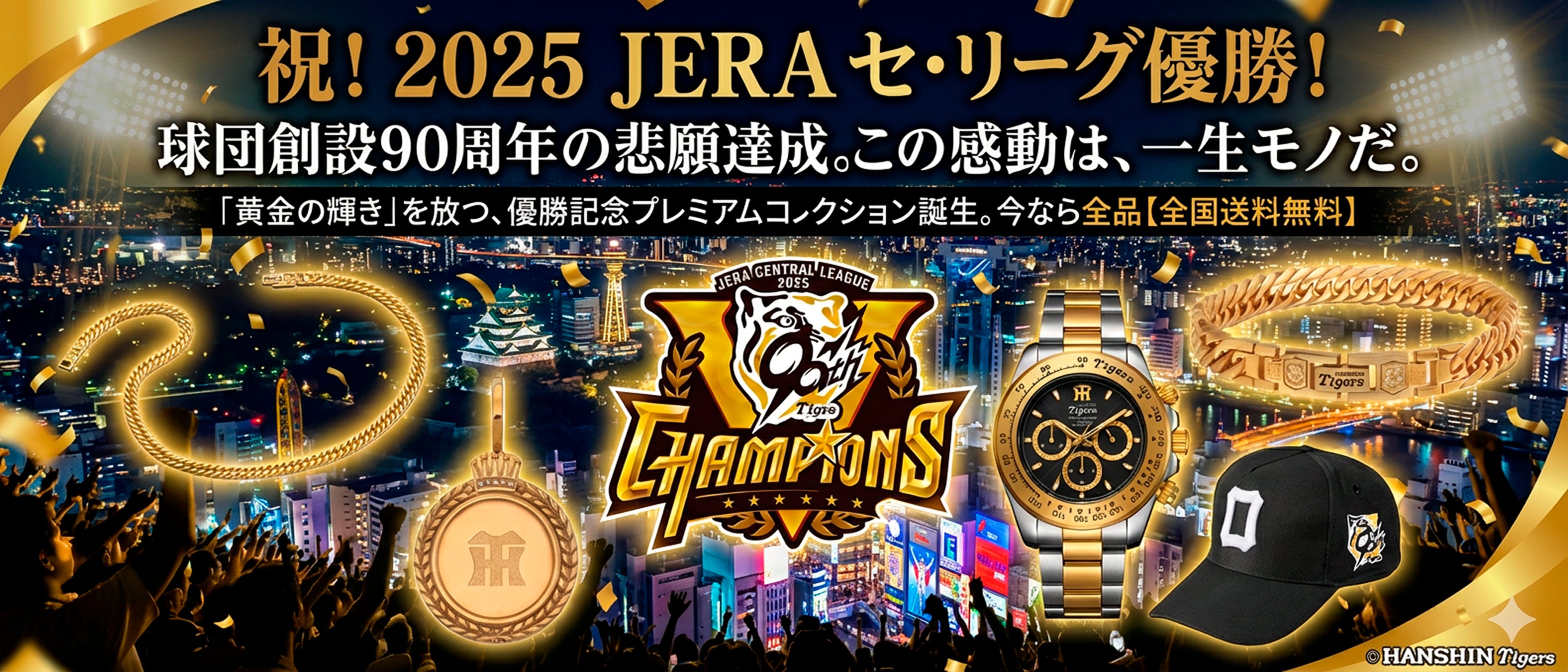 記念すべき90周年の節目を迎えた2025年。阪神タイガースは藤川新監督のもと「鼓動を鳴らせ。虎道を進め。」を合言葉に躍進しました。若手とベテランが融合し、強力な投手陣と繋がりある打線で他球団を圧倒。序盤から他を寄せ付けない独走態勢でペナントレースを制し、ついにJERA セ・リーグ優勝という歓喜の証を掴み取りました。セ界の盟主として確固たる地位を築いた、この熱狂と感動。 共に戦った証として、このメモリアルな輝きをその手に。